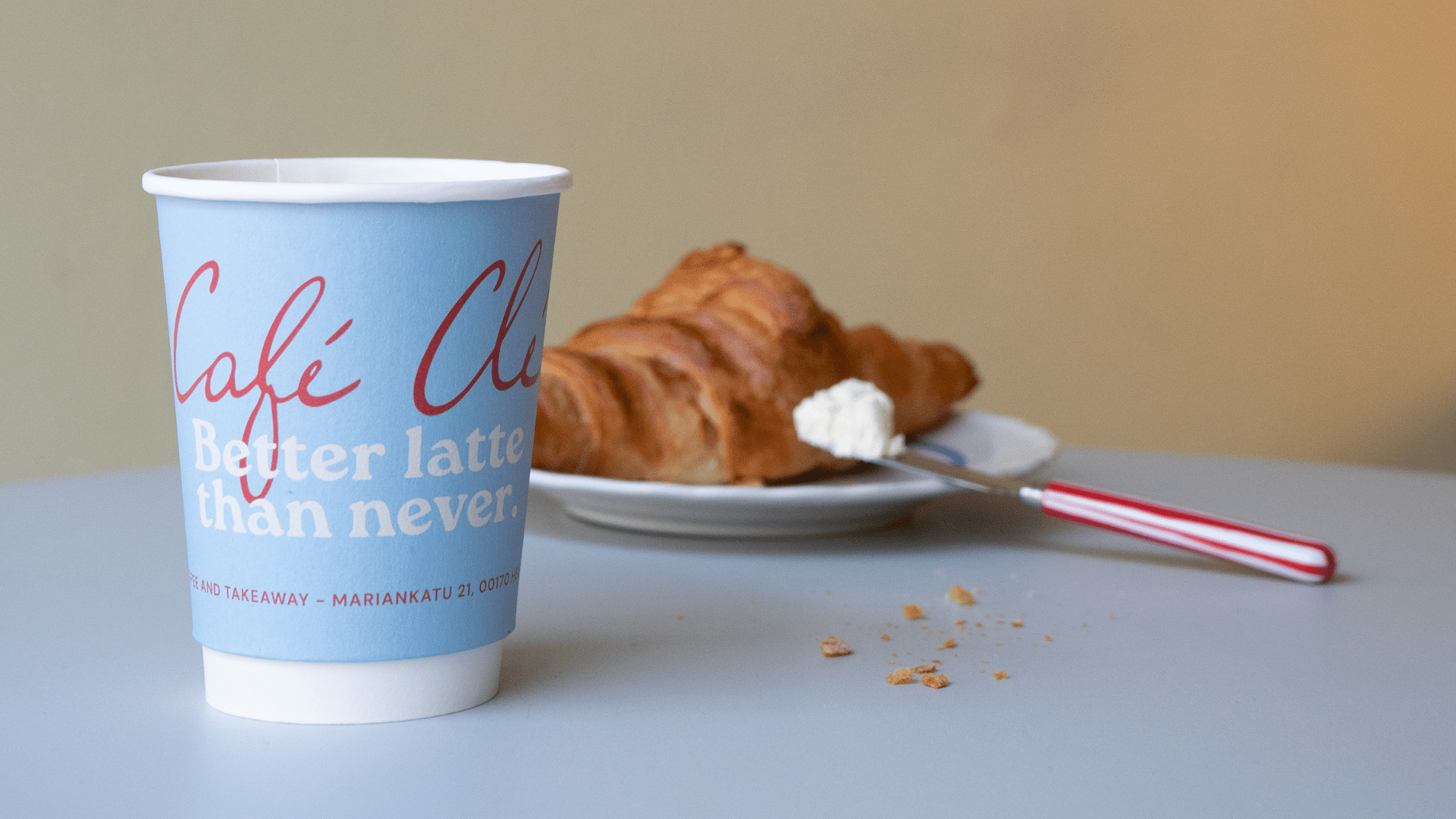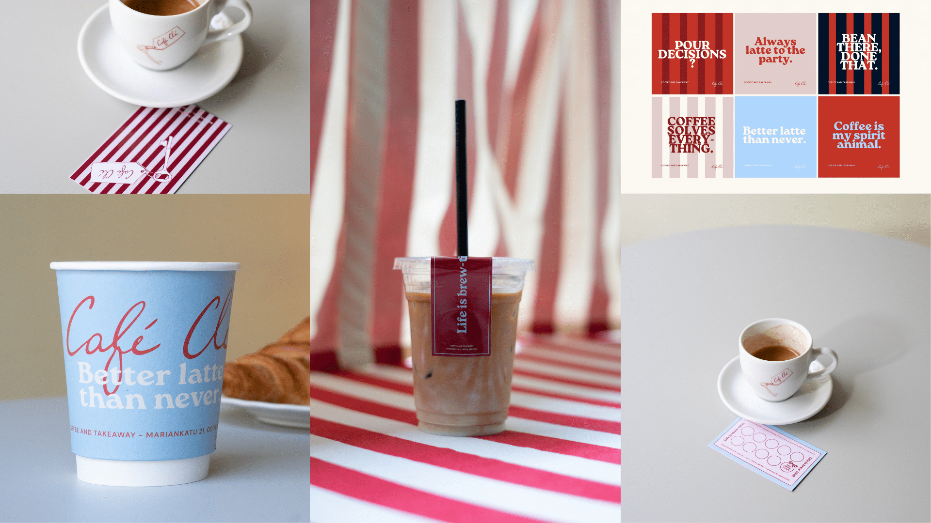 Jalkautimme brändin olemuksen kahvilan arkeen: kirjoitimme kahvilan henkeen sopivat sloganit ja suunnittelimme henkilökunnan t-paidat, takeaway-kupit sekä leimakortit – pieniä, toistuvia pintoja ja sanaleikkejä, joissa brändi elää joka päivä. Näin kahvilan ihmisläheinen energia muuttui tunnistettavaksi ilmeeksi ja brändipersoonaksi, joka hymyilee takaisin.